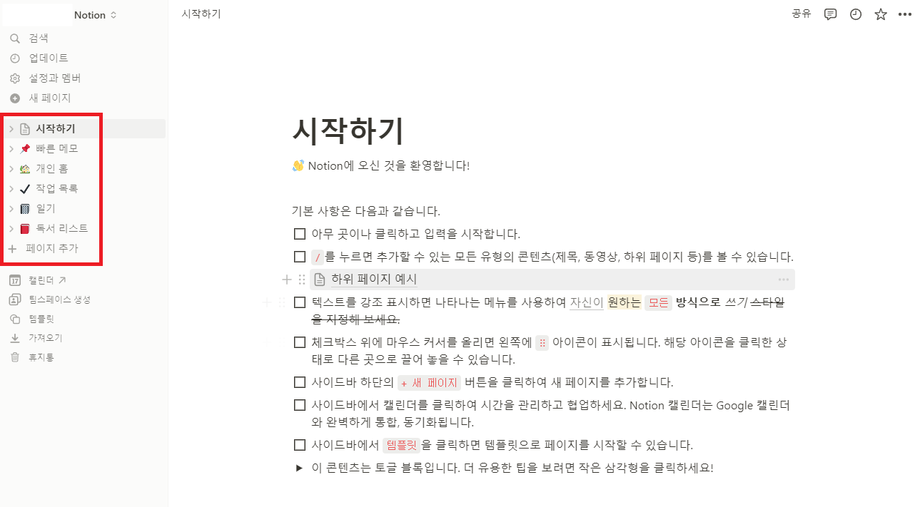 노션 셋팅방법과 시작하기